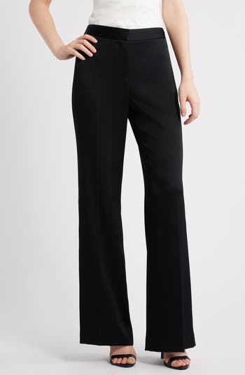 Dramatic flared hems add retro-inspired charm to these polished high-waist pants.