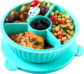 - Meal-Prep Friendly: 4.2-cup capacity with a removable 3-part divider, built-in toppings well, and dip cup—perfect for salads and make-your-own bowls, mix-at-lunch meals. Leakproof Secure: Triple-latch lid with silicone gasket keeps ingredients fresh and sealed for mess-free transport. Microwave Freezer Safe: Bowl is microwave safe (without lid) and freezer friendly—ideal for prepping ahead. Easy to Clean: Top-rack dishwasher safe; removable gasket and smooth surfaces make hand washing a breeze. Compact Lightweight: Measures 7.5"" x 2.8""; made from BPA-free, recyclable polypropylene for safe, everyday use.