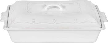 What it does: Crafted from durable Portuguese stoneware, this baking dish features a lead-free glaze that safely takes food from from the oven or microwave to the table to the freezer.