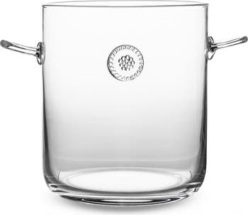 Keep your favorite bottled beverage on ice in this blown glass ice bucket paired with hammered tongs for an elegant serving of form and function.