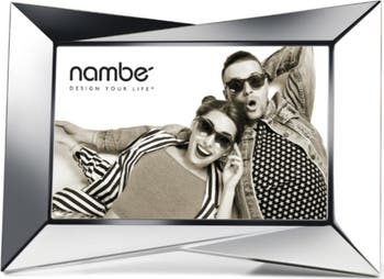 Polished Nambé alloy sculpts the dramatic geometric form of this handsome frame that s a tribute to mid-century modern design.