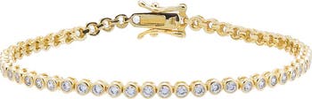 Express yourself with the Adina Eden Bezel Tennis Bracelet, the perfect way to reveal your inner enthusiasm. This exquisite bracelet, adorned with bezel-set stones, adds a touch of elegance and charm to your look. Let your excitement shine through in style and sophistication with this captivating accessory.