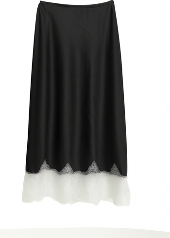 Elevate your wardrobe with this timeless satin skirt, designed for effortless elegance and versatility. Crafted from smooth, silky satin, it drapes beautifully to create a flattering silhouette that moves with you. The delicate lace trim at the hem adds a romantic touch, bringing texture and femininity to this classic piece.