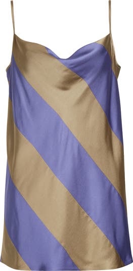 The bias is unmistakeably toward bias, in both cut and pattern, for this cowl-neck camisole made from lightweight satin.