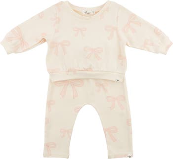 Boxy style sweatshirt with all-over pink big bows print and includes matching Brooklyn Joggers to make an adorable set. Available in infant and toddler sizes. Designed in Minnesota.
