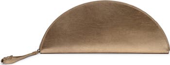 Elevate your evening-out or party look with this metallic calfskin clutch designed in a chic half-moon silhouette detailed with the maison s anti-label four stitches for in-the-know branding.