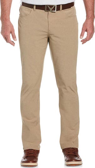 These lightweight golf pants from Callaway are designed with 4-way Opti-Stretch technology for a full range of motion. OPTI-DRI™ technology immediately draws moisture to the surface and disperses it, helping keep you cool and dry no matter what s on the day s agenda. 66% polyester/26% cotton/8% elastaneMoisture-wicking technolgyStretch waistband with belt loopsShank-button closure, zip flyFlat-front styleOn-seam side pocketsButton-welt pocket at back left, open welt pocket with interior grip strip at back rightEmbroidered chevron logo above back right pocketMachine wash; imported