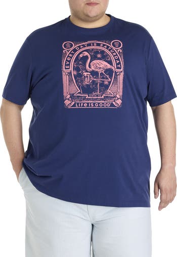 Get that Saturday feeling any day of the week with this comfortable, easy-to-wear Life is Good® graphic tee. Spreading positivity and good vibes with its screenprinted chest graphic, it s designed with proper proportions for Big and Tall guys and crafted in soft, 100% cotton with a feels-like-you-had-it-forever ease, making it the perfect choice to pair with jeans, shorts or joggers for laid-back casual comfort.