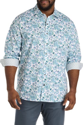 This modern sport shirt features a sophisticated tonal paisley print — a pattern that stands out enough to be noticed, yet is refined enough to wear for a wide range of occasions. It s crafted using more sustainable practices in soft cotton with a touch of stretch for ease. Designed at DXL with precise proportions and an ideal fit for Big and Tall guys, it s comfortable and easy to wear, delivering mobility without sacrificing structure. Roll the sleeves for a casual edge, or keep it sleek and buttoned for a dressier look.