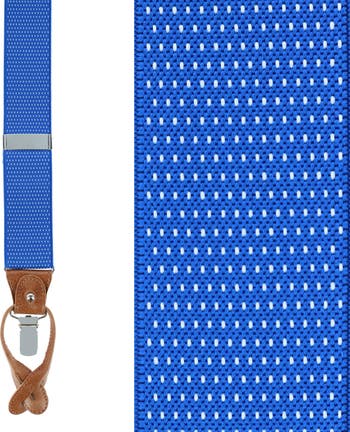 The Big and Tall Napier Elastic Convertible Braces are a classic and stylish brace to add to your collection. They add a bit of color and pattern to your outfit with the fine detailing. These classy and comfortable convertible braces are excellent for office wear, parties, church, and weddings. Made in the United Kingdom, these convertible braces feature a full-grain leather back patch and button ends with silver adjusters and clip-ends. You are able to adjust these suspenders up to 57 inches with the Y-Back style and elastic back strap. The convertible ends give you the option to wear the Napier as button-ends by detaching the clip-ends from the base. Or wear these as clip-ends and simply slide out the button-end from the drop-tab.