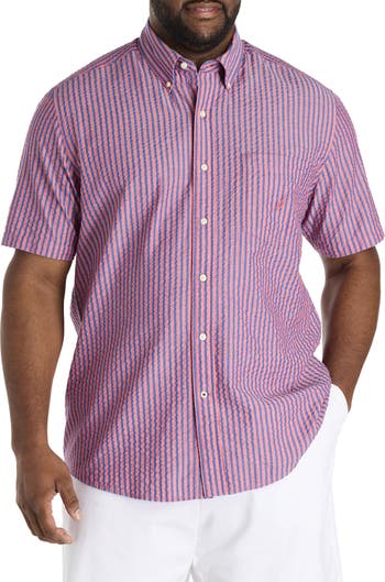 Lightweight, comfortable and allowing for the freedom to move without restriction, this striped seersucker sport shirt from Nautica is ready for the sunshine. Crafted in 100% cotton and designed with precise proportions and an ideal fit for Big and Tall guys, it pairs perfectly with khakis, jeans or shorts.