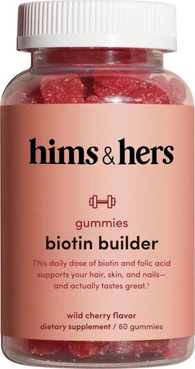 - hims hers biotin gummy vitamins support thick hair, strong nails, and healthy skin. Also contains key nutrients that are good for your heart, nerves, and digestion