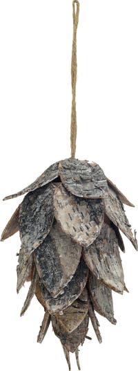 This birch bark pinecone ornament is a celebration of nature s unadorned beauty. The ornament, standing 7.75 inches tall, is crafted from real pine wood and wrapped in authentic birch bark, giving it a unique texture and pattern that varies from piece to piece. It s not just an ornament; it s a piece of the forest that has been brought indoors, providing a rustic yet refined touch to any holiday decor or year-round home embellishments. This is a perfect choice for anyone who loves graceful and elegant home decor.