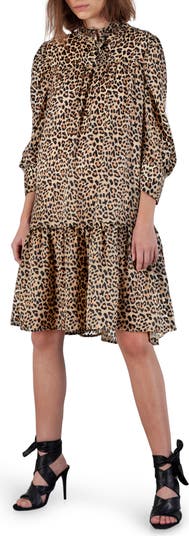 With its burnout leopard spots, puffy balloon sleeves and ruffled hem, this dress makes a fiercely playful statement.