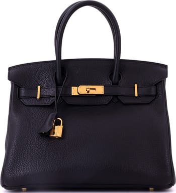 Birkin Handbag Black Clemence with Gold Hardware 30