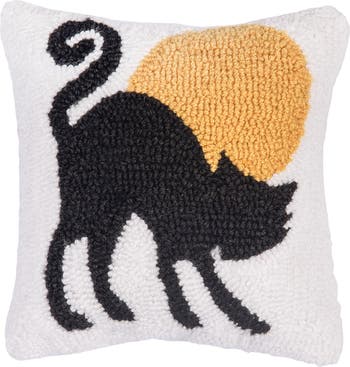 - Perfect accent pillow to decorate your living room, sofa, or bedroom during fall and Halloween. Small yet stylish, it enhances seasonal charm while being versatile enough for any space in your home décor. Features a charming black cat and glowing moonlight design crafted with hooked detailing. Its petite size makes it easy to mix and match with other décor while adding personality to your autumn displays. Fits effortlessly on sofas, chairs, and beds, or as a layered accent with larger pillows. Its mini 10" x 10" size makes it an easy addition to seasonal decorating without overwhelming your space. Crafted with hooked construction for a durable and textured look that elevates your seasonal décor. Designed to be both decorative and lasting, making it a piece you can bring out year after year.