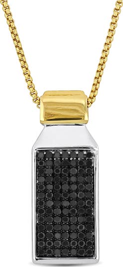 Elevate your style with this modern Drop Necklace. Crafted in 14k two-tone white and yellow gold, this unique pendant features a round, pave-set black diamonds encrusted in the centerpiece. Suspended from a 20-inch box chain, this contemporary design offers a bold and sophisticated look, perfect for adding a touch of luxury to any outfit.