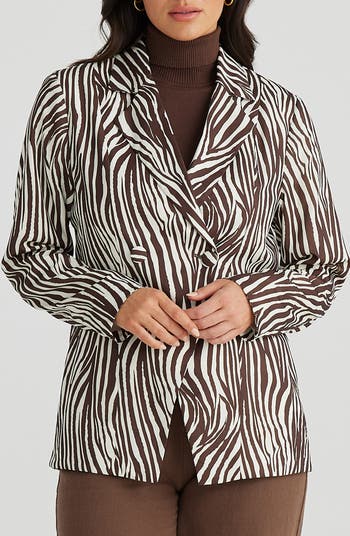 Jazzy stripes animate a double-breasted jacket that works for desk days and drinks dates.