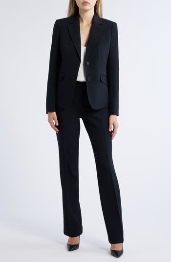 A starter kit for your professional wardrobe, this three-piece set features a classic notched-lapel jacket, tailored pants and a knee-length skirt.