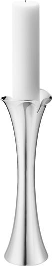Designer Helle Damkjær captures the moment a flower bud begins to bloom in a sculptural candleholder made from stainless steel with a mirror-polished finish.