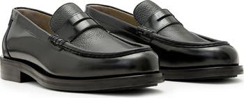 A mix of polished and full-grain leather and a hand-stitched apron toe lend textural dimension to this classic penny loafer that s party-ready with a lightweight rubber sole.