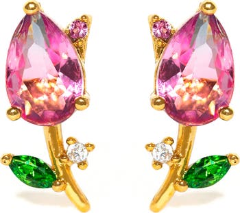 Sparkling tulips bloom in full color in these dainty cubic zirconia stud earrings ready to refresh your stack.