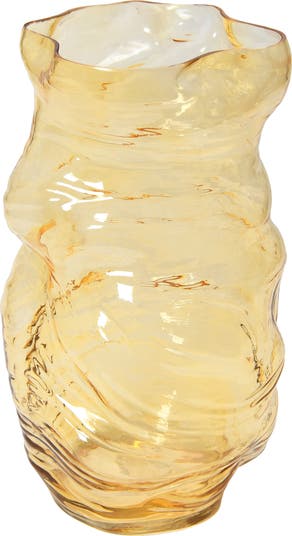 - This strikingly modern vase features a hand blown glass organic bubble silhouette in an amber finish