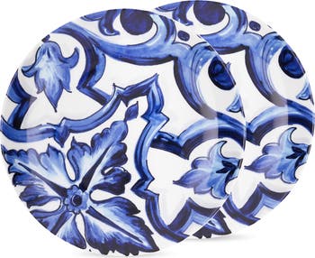 A palette of pure white and intense blue invigorates the brand s classic pattern on these plates crafted in Italy from fine porcelain.