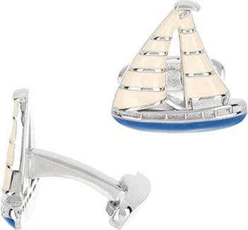 High fashion meets the high seas in these blue painted enamel sailboat cufflinks. We love these for beach weddings, naval graduations, and yacht parties.