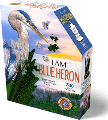 - AWARD-WINNING AND AWE-INSPIRING, Madd Capp puzzles are big and beautiful and way more fun than your average 300-piece jigsaw! I AM BLUE HERON has a bird-shaped border (17" x 29" assembled).