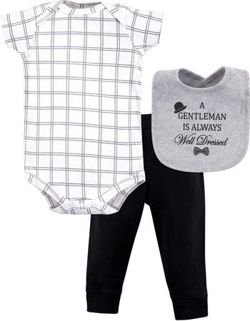 Little Treasure bodysuit, pant, and bib set is an adorable three-piece clothing outfit for your little one. The bodysuit and pant make a great matching outfit and the bib will help keep the outfit from getting messy. Our adorable outfit can be used at home or when you are out and about.