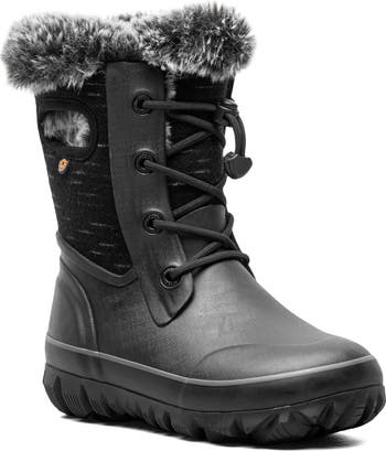 Fluffy faux fur lends cozy detail to a waterproof, kid-size boot featuring DuraFresh bio-technology and BOGS Max-Wick for fresh (and odor-free) wear.