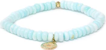 A 14-karat gold charm and bead elevate this opal beaded stretch bracelet that brings organic color to your stack.