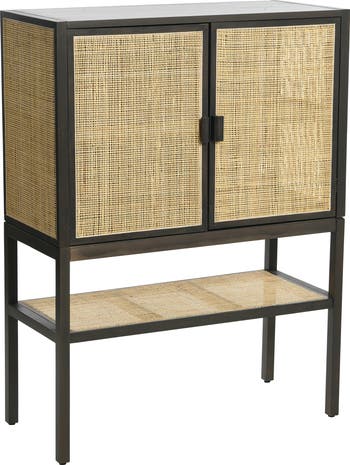 - The natural rattan cane panels of this accent cabinet lend well to Global, Modern, and Boho decor, while the dark grey finish of the solid wood frame is well-suited for Transitional and Farmhouse aesthetics as well