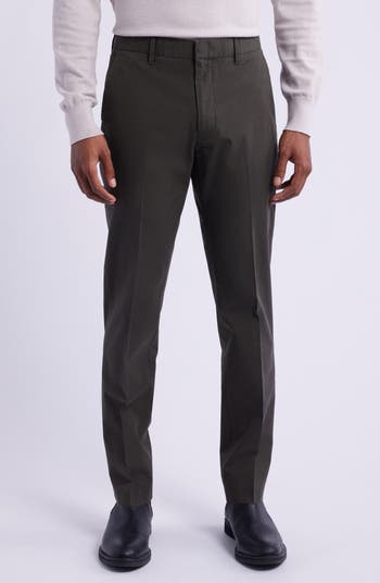 A sharp look for any day of the week, these trim-fitting flat-front pants are made from smooth, easy-care stretch cotton in a yarn-dyed houndstooth pattern.