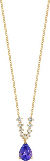 A pear-shaped tanzanite and nine sparkling diamonds define a handcrafted necklace that will always be beloved.