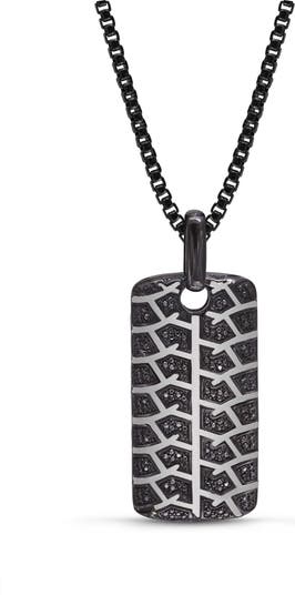 Born Tire Tread Silver Black Diamond Tag Necklace