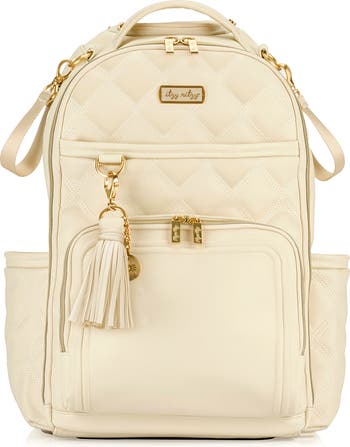- Tons of interior and exterior pockets, 19 total pockets (13 internal and 6 external including 2 large insulated bottle pockets) and a unique, easy access front mom pocket with 3 interior pockets and key lanyard. Laptop pocket – fits up to a 15” laptop. Zippered tall front external pocket. Coordinating easy wipe changing pad included with whimsical "head" and "toes" printed on the inside.New Itzy Ritzy Logo and Braid Rubber Foot design.Spot Clean with damp cloth.