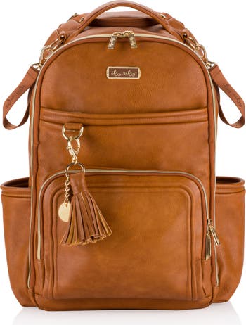 - Tons of interior and exterior pockets, 19 total pockets (13 internal and 6 external including 2 large insulated bottle pockets) and a unique, easy access front mom pocket with 3 interior pockets and key lanyard. Laptop pocket – fits up to a 15” laptop. Zippered tall front external pocket. Coordinating easy wipe changing pad included with whimsical "head" and "toes" printed on the inside.New Itzy Ritzy Logo and Braid Rubber Foot design.Spot Clean with damp cloth.