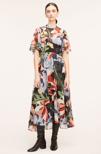 Presented on flowy chiffon, our bold 1960s-inspired botanical garden print makes an elegant entrance on a timeless silhouette. Model is 5 10" and wearing a size 2/small 90% Silk, 10% Spandex Dry clean only