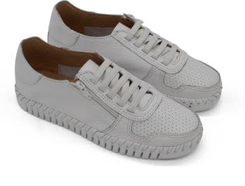 Intricate perforations add a touch of playful texture to this modern monochrome sneaker.