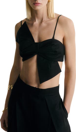 Take your special-occasion style up a notch with this stunning crop top embellished with an asymmetric bow.