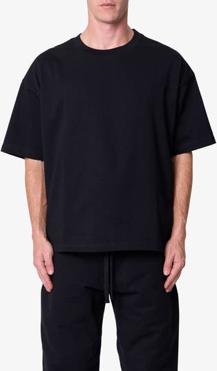 Constructed from heavyweight 300 g/m² cotton jersey with a garment-wash finish, this T-shirt features a cropped, boxy silhouette with dropped shoulders.