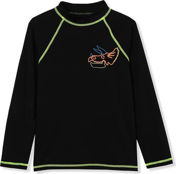 It s not easy keeping kids covered with sunscreen. That s why we love our rash guards. They re the ultimate backup to sunscreen with a UPF 50 rating, the highest possible, blocking 98% of harmful UV rays. Protection lasts the life of the garment too, through lots of washing and exposure to sun and chlorine. Stretchy nylon/spandex blend holds its shape when wet.