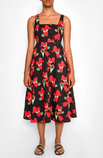 Effortless chic gets a modern update in this stretch-cotton sundress featuring clean lines and a sunny back cutout with tie straps.
