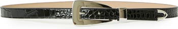 An angular buckle adds a sculptural finish to this croco-embossed leather belt that s an easy way to dial up the drama in your OOTD.