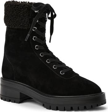 Faux-shearling trim plays up the cozy-chic attitude of this lace-up boot inspired by classic hiker style.