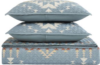 Give your bedroom retreat an artful makeover with the distinctive pattern of this set of a lightweight quilted coverlet and pair of matching shams.