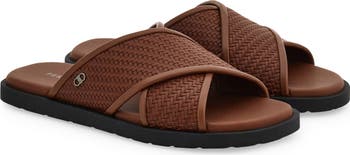 Wide crossover straps with an intricately woven texture and gleaming double-Gancio hardware bring rich dimension to this lightly padded slide sandal set atop an ultralight rubber sole.
