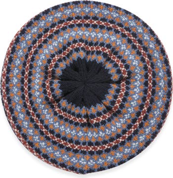 Top off all your favourite looks with creative edge by turning to our Fair Isle beret. Turned out in a fresh interpretation of the classic Fair Isle pattern, this lambswool hat forms part of an irresistible cold-weather trio. So snap up the gloves and scarf to stay coordinated through the chilliest of snaps!